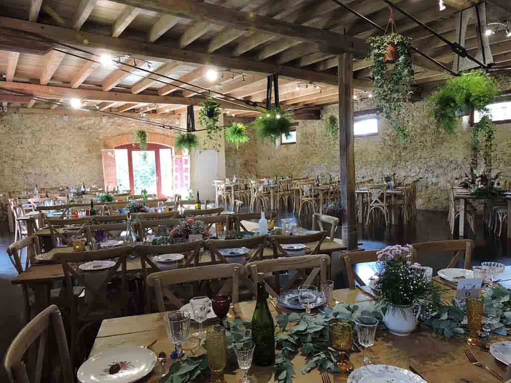 Prévue pour 120 places assises, les tables rondes de 10 places et les chaises sont fournies à cet effet.
